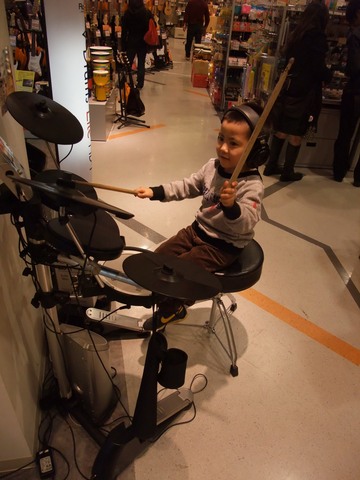 お昼食べつつららぽーとでお遊戯会の打ち上げ。楽器屋に寄り道して遊んでます。