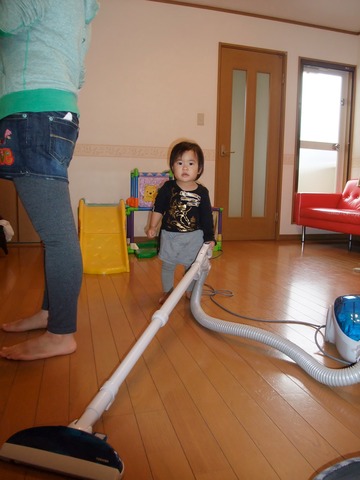 宝が持つとやたらながーく感じる我が家の掃除機。