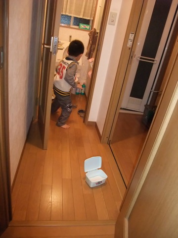 少々こぼしてしまったので自分でそうじするそうです。エライぞ!