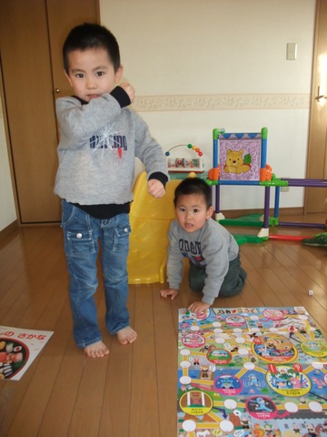 幼稚園のクリスマス会でサンタさんにもらったすごろく。記念すべき初ゲームの勝者は空でした!