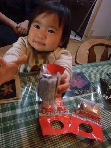 人見知りしそうだったのに楽しそうなものを渡されて急に機嫌のいい宝さん。