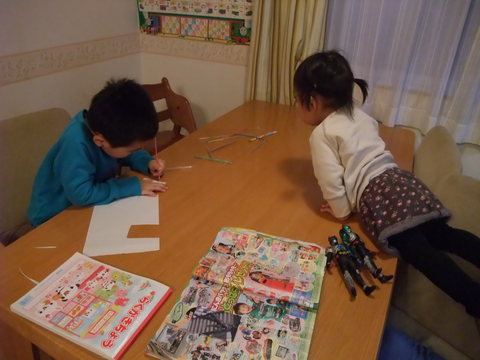 今週から我が家は仮面ライダー剣(ブレイド)が流行し始めました。トランプモチーフのライダーなので、空はせっせとカード作り。