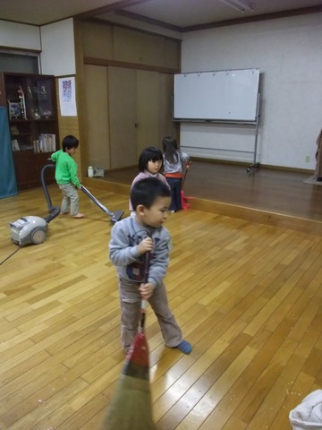 つみきの後片付けは、まず子供らが掃除して、大人が仕上げ。凪も今日は志願のほうき係。