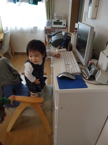 大好きなポジションをゲットして喜色満面の宝。で、このイスをここにセットした人は、というと・・