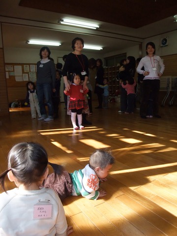最初から参加する気ゼロ。端っこで「赤ちゃんだから参加できませんオーラ」放出中w
