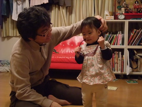 髪を伸ばせ、と言う割に「耳にかけたほうがかわいい」なんてのたまう父さん。それは「ショートカットが似合う」ってことなのだぞw