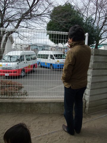 空の乗った青バス到着。来年度は左の赤バスになるそうな。