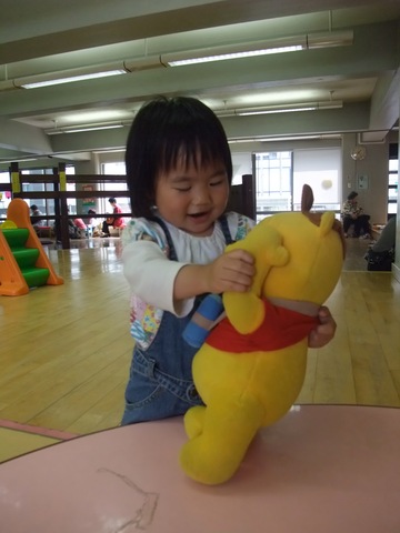 プーさんと遊ぶ宝。嬉しそうねぇ。よかったねぇ。