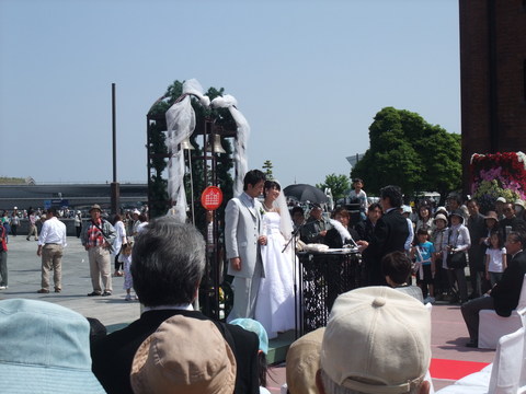 今日は真吾の友達の川越さんが赤レンガで人前式なのです。参列は家族だけ、あとはみんなギャラリーです。