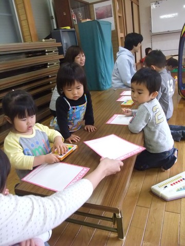 お店から頼まれて母の日ディスプレイ用「おかあさんのかお」を描いてもらってます。え?宝も描くの!?