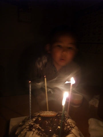 ろうそく4本吹き消します。おめでとう、凪。また1年すくすく大きくなあれ♪