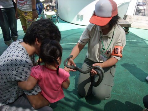その後、アオダイショウ触る宝さん。キミの怖さメーターって。。(あ、でもヘビはつるっとして気持ちよかったです♪)