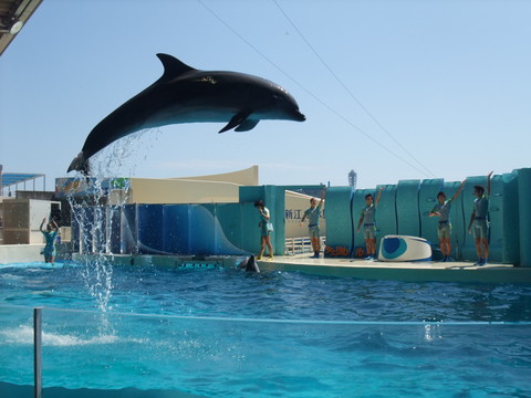 これだけ暑いとイルカのショーも涼やかで気持ち良さそう。