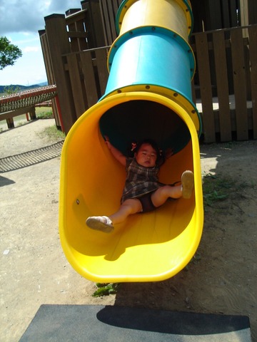 すべり台の途中、1回ジャンプするところでしりもちついたらしくてこのざま。