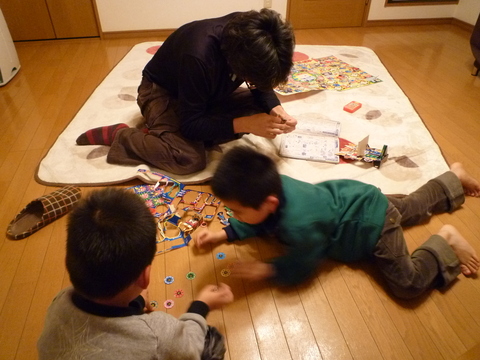 ばーばに新しい雑誌を買ってもらった空凪。早速、付録を作ってもらってます。