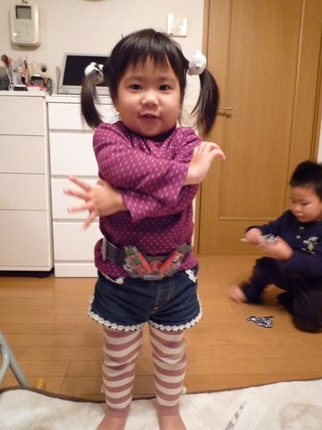 兄さんたちの付録で得意げに変身ポーズ決める宝さん。