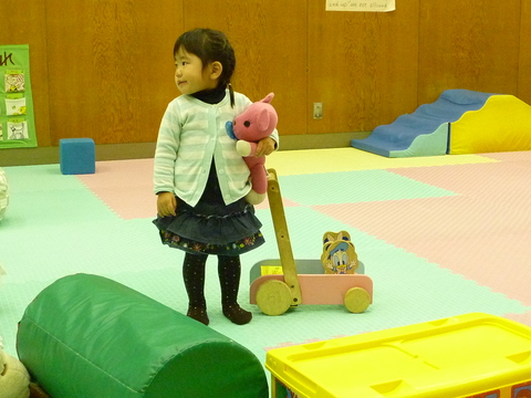 赤ちゃんプレイコーナーでぬいぐるみ抱っこしてその表情か!w