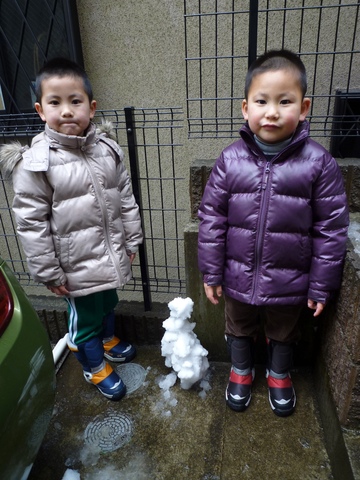 残りわずかな午後の雪で恐竜を作ったそうな。かっこいいじゃん。