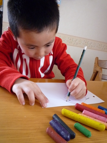 卒園式に先生に渡すカードを製作中。明日提出なので親子とも必死ですw