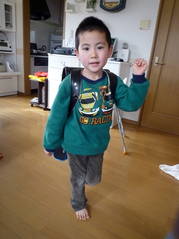 あら、背負うといっちょまえに見えるじゃないの。よかったねぇ。