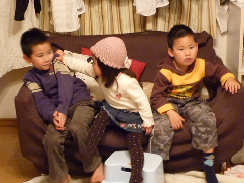 3人並んでDVD見てたはずなのに、突然、宝が空を襲撃!!!