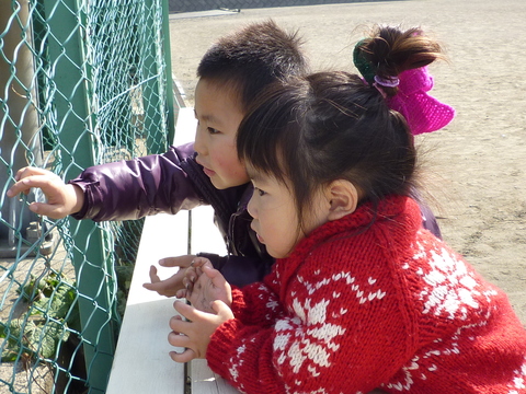向かいの原っぱに犬数匹を発見。あちらもお散歩中だったみたい。