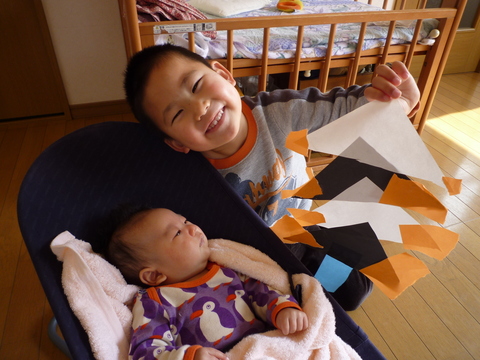 「一人で寝てるからさみしくて泣いちゃうんだ」と新のために工作を。ベッドに飾っておけばさみしくないよ、って。