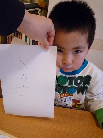 表を見ながら自分で書いてみた。形が整わないのはしょうがないよ。すぐ上手になるよ。