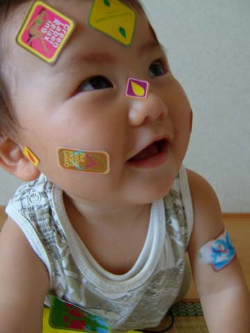 お父さんにいっぱい貼ってもらったのー。似合う〜?