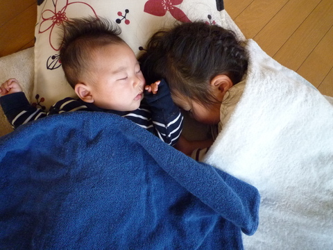 若干汗蒸している姉に添い寝される新どの。30分もしないで起きちゃった。ま、いたしかたないかw
