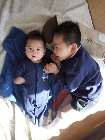 「ようちえんってたのしいんだよ」って新に話してる凪。半分は自分に言い聞かせてるよね。