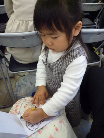 大人しくぬりえで時間をつぶす宝さん。