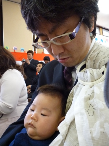 伏し目がちながらもグズらずに座ってる新さん。こんなに小さくったって、場の雰囲気に合わせられるんです。