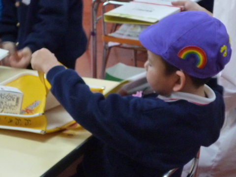 おみやげを配る前の先生の指示をちゃんと実行する凪。本当にしっかりさん。