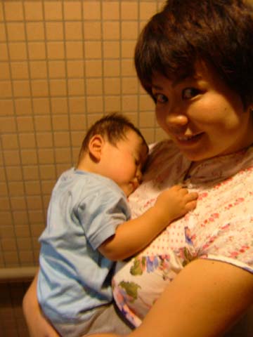 車の中で抱っこしたまま眠ってしまいました。いい休日だったね!真吾、またおいしいの食べに行こうね!(←おねだり)