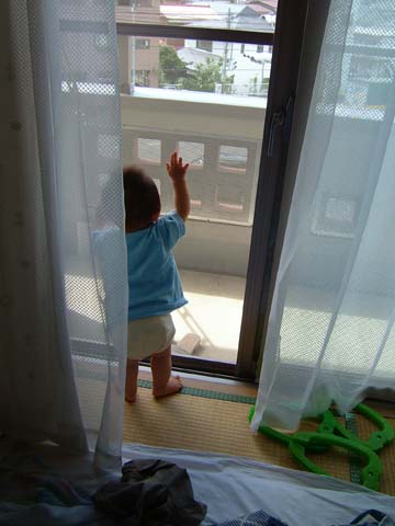 ひとりでズボン脱いで(後方に落ちてるやつね)網戸でタッチしてました。