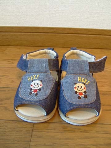 外でも立ちたがるようになったので、サンダルを購入。ちなみに、12.5cm。(←これって、でかいの??)