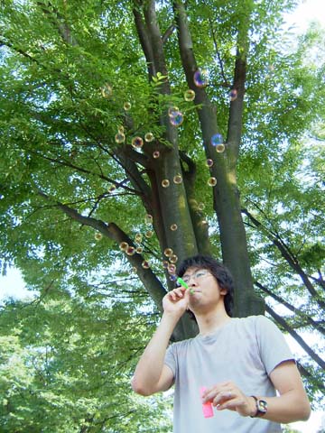 真吾はシャボン玉が上手なのです。(トモコは全然ダメ)