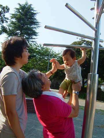 こっちの遊具で遊んでみることに。親子3代ほほえましい休日です♪