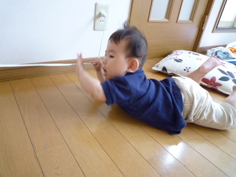 おそらくどんなおもちゃより電気コードが大好きです。おおきあらた、6ヶ月です。
