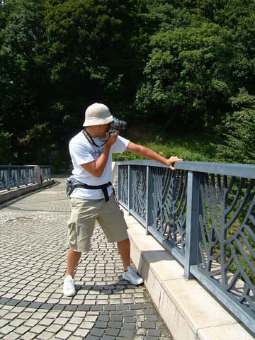 めちゃめちゃ高い橋の上にて。格好はすごーく探検隊チックなのに、高所恐怖症のためこのご様子(笑)