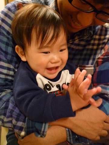 みんながニコニコ歌ってくれてるのが嬉しかったみたい。よかったね。みんながお祝いしてくれてるよ。おめでとう。