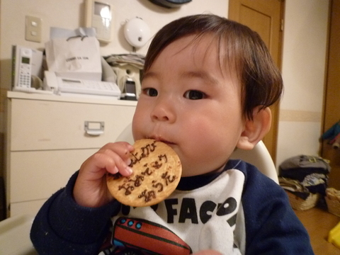 チョコ解禁。1歳だからね。がぶっといっちゃっていいのよ。