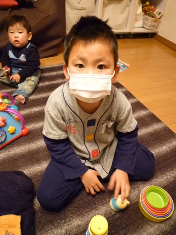 早めのタミフルで熱も下がってきたよ。あとは後ろの方にうつさないように、マスク、よろしくね。