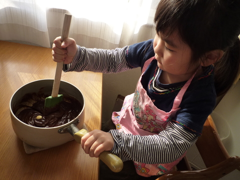もうすぐバレンタインデー。というわけで、今年は自分で作ります。まずはチョコを溶かしてぐるぐる。