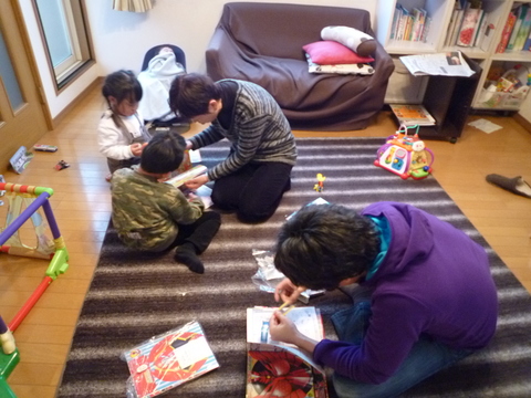 お茶もそこそこに付録作りさせられる真吾。がんばれー、おとーさーん。