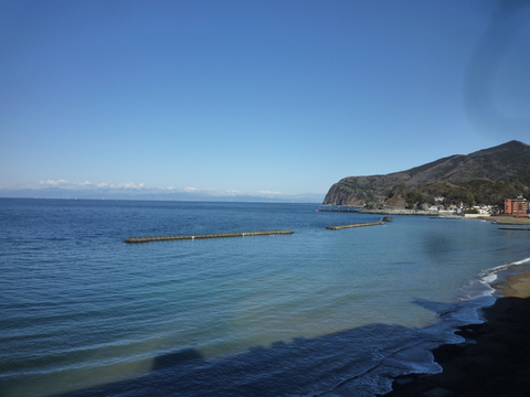 今朝の海は穏やか。そうそう、「碧き凪ぎの宿」っていうホテルでしたのよ♪
