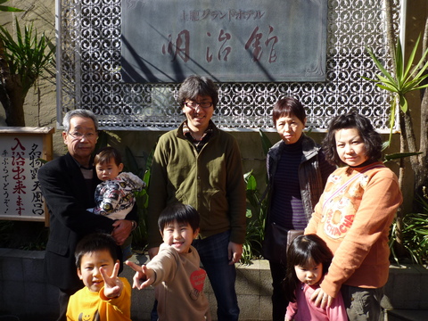 ホテルの方が撮ってくれました。「〜の宿 明治館」というのが正式名称。