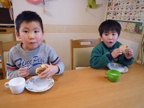 今日のおやつはチョコスコーン。これはおかーさんから、ってことで。