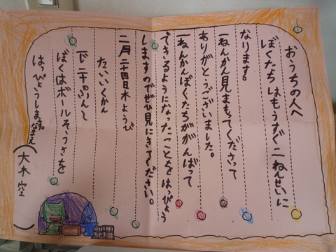 空から招待状をもらいました。今度の授業参観は、なにやら発表会形式になるようです。